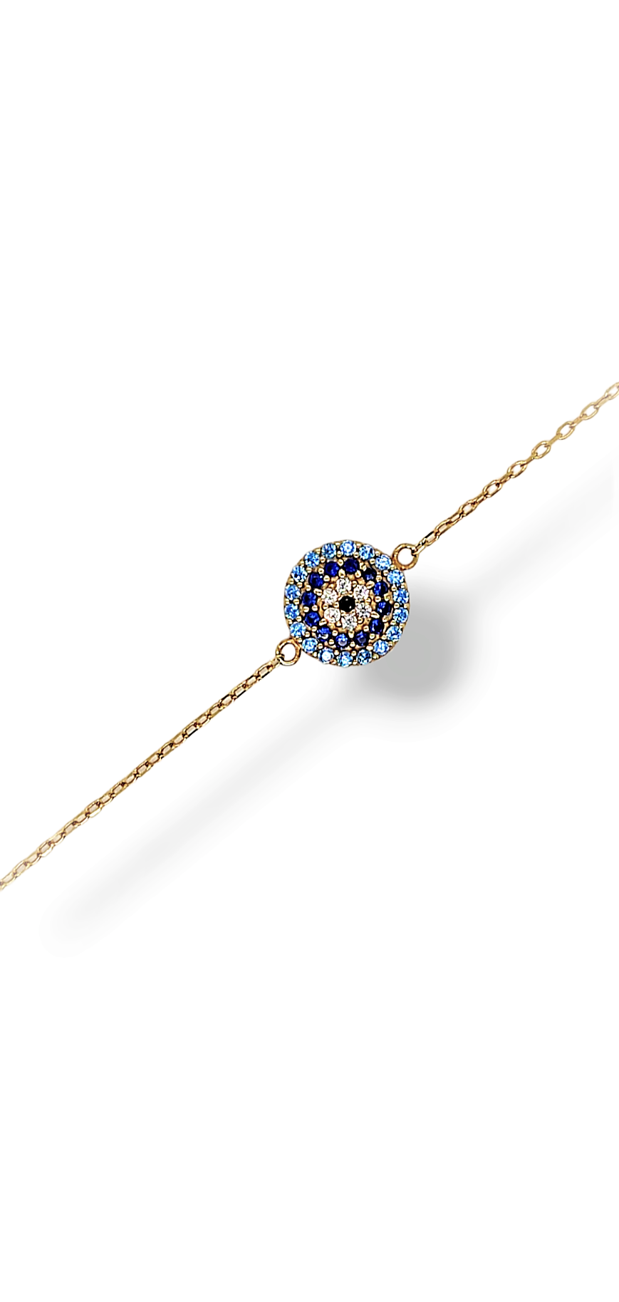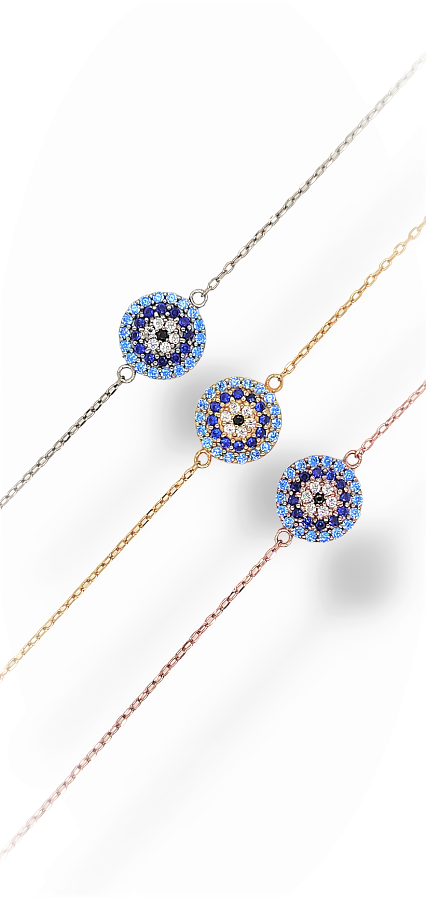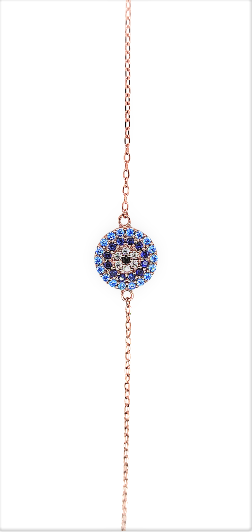 Βραχιόλι Evil eye από ασήμι 925 με πέτρες σε μπλε και aqua χρώμα.
