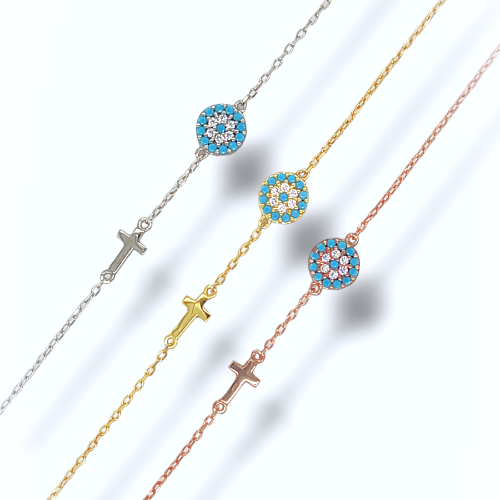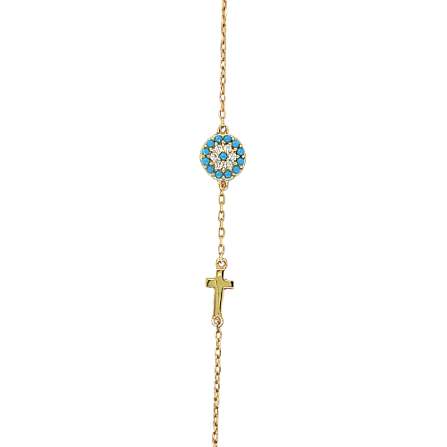 Βραχιόλι μάτι με πλαϊνό σταυρό
