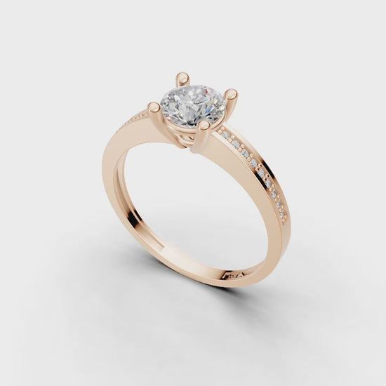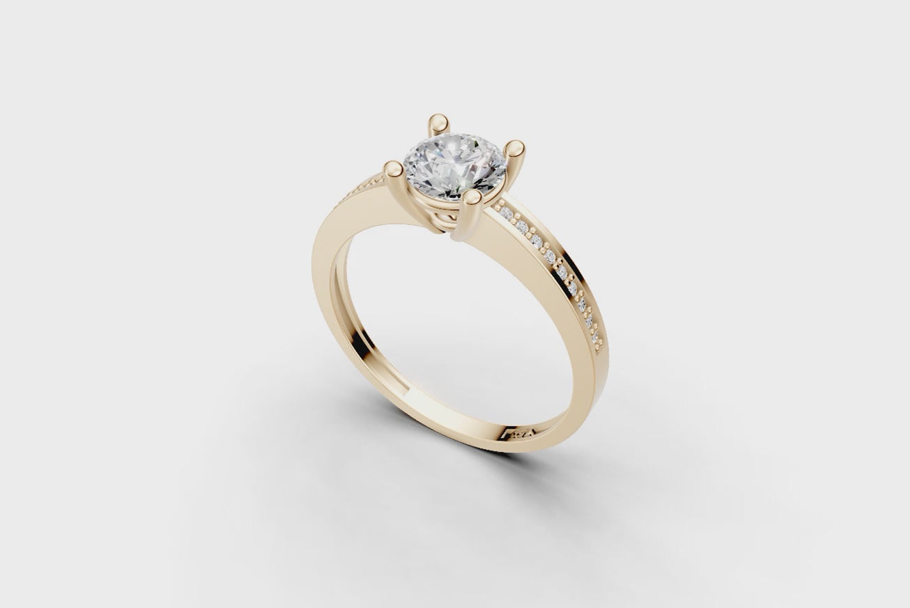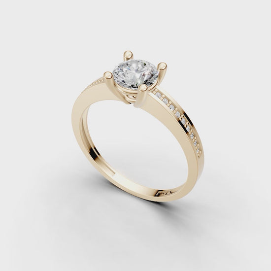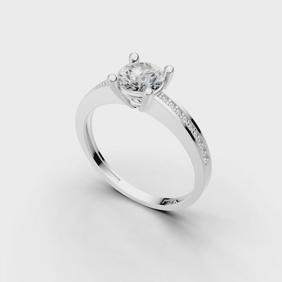 Ζήστε την απόλυτη κομψότητα και λάμψη με το στρογγυλό κέντρο και τις φωτεινές πλαϊνές πέτρες.